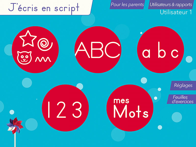 - Motive les enfants à écrire grâce à des vignettes animés, des effets sonores et des petits jeux interactifs animant les lettres une fois que le tracé a été réalisé